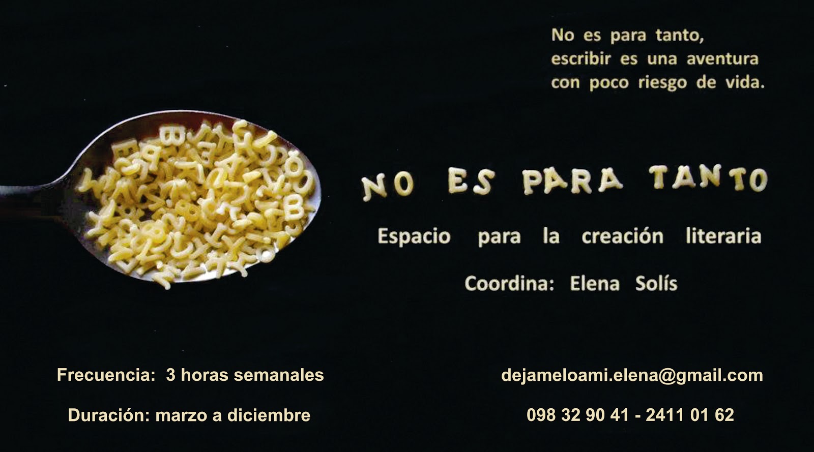No es para tanto es un taller de creación literaria. Su título refiere a ese miedo que nos aborda a la hora de empezar a escribir, escribir es desnudarse, es exponerse y uno de los objetivos del curso es perder el miedo. Cuando se escribe con miedo, sin libertad, cuando uno se esconde en vez de mostrarse en el texto, se pierde el acto comunicacional y no hay técnica que valga.